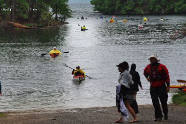 The second day of our journey began with a beautiful morning and sunny skies that continued straight through to our lunch at Seeley's Bay. We were once again treated to a delicious meal and greeted by the smiling faces of our ground crew. Even though it is only my second year as part of this amazing experience, I already feel warm and welcome in this established group of veteran paddlers and crew. After lunch, we tackled an up hill portage which was made easy by all of the helping hands and teamwork. There is always someone waiting to help you out of your kayak and then to also help you carry it and get back in the water. Throughout the even sunnier afternoon, we made our way into Davis locks, where we are now.