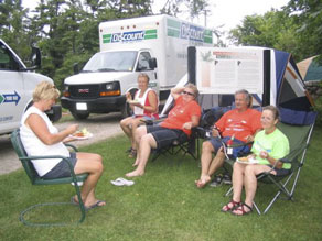 Lake, and stopping at Davis locks for the night. Once again the canal traffic held back the support boat. Shane Barnes arrived at Davis locks long after the kayaks had arrived. Dinner was homemade chicken lasagna prepared by Ann Dionne. Another