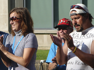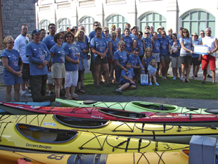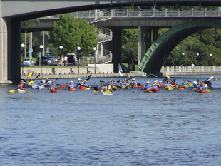 After lunch we continued to the finish line. The Rideau Canoe Club was having a Regatta today in Mooney's Bay. So naturally we stopped in. The kayakers chanted songs and explained to the crowd that we had left Kingston eight days ago to "Kayak for Cancer". As soon as Uncle Mike mentioned the donation bucket, a flood of people came down to donate. There was an actual line of people waiting to put money in the bucket. Thank you Rideau Canoe Club. We hope you have your Regatta on the same day next year.