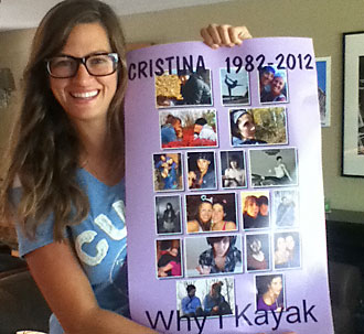 Wherever you fly, this isn't goodbye... This year my kayak comes bearing a tribute to my Partner in Crime, Cristina Roque. It was about this time last year that I received a lunchtime email from my best friend, cheering us all on into Ottawa. She commented on how it was ironic that we were working our hardest to get to Ottawa, while she was working her hardest to get out of Ottawa. Cristina was in Ottawa having treatments for Lymphoma that had appeared for the third time. Although she was not able to meet us at the Chateau Laurier, we met up at the hospital later that night and had a celebration of our own. To backtrack a little, many of the paddlers from last year say their most unforgettable memory was the cancer survivor we encountered in the locks, mine was arriving at Cristina's residence to streamers, balloons, a "Way to Paddle" sign, and the most inspiring girl in her housecoat and toque, being proud of the whole kayaking crew. Since this time last year Cristina went from being in remission - having some of the best times, to leaving us speechless when her body gave up during her fourth cancer fight, at the age of 29, this March. So to make a long story longer, my kayak will paddle into Ottawa holding a collage of photos of a life that had so much living left to do. Cristina pushed herself to live out loud and fought fiercely to do so until the end. She was so much more then this disease and I paddle to honour that. Although there will be a giant part of me missing at the end, the many people who have seen Cristina's photos and ask about her story remind me how this week matters.