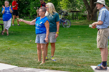 DAY 8 (page 1 of 2): Saturday, August 18, 2018 Bev, Nicki and Laurie serve this morning's hot breakfast.
