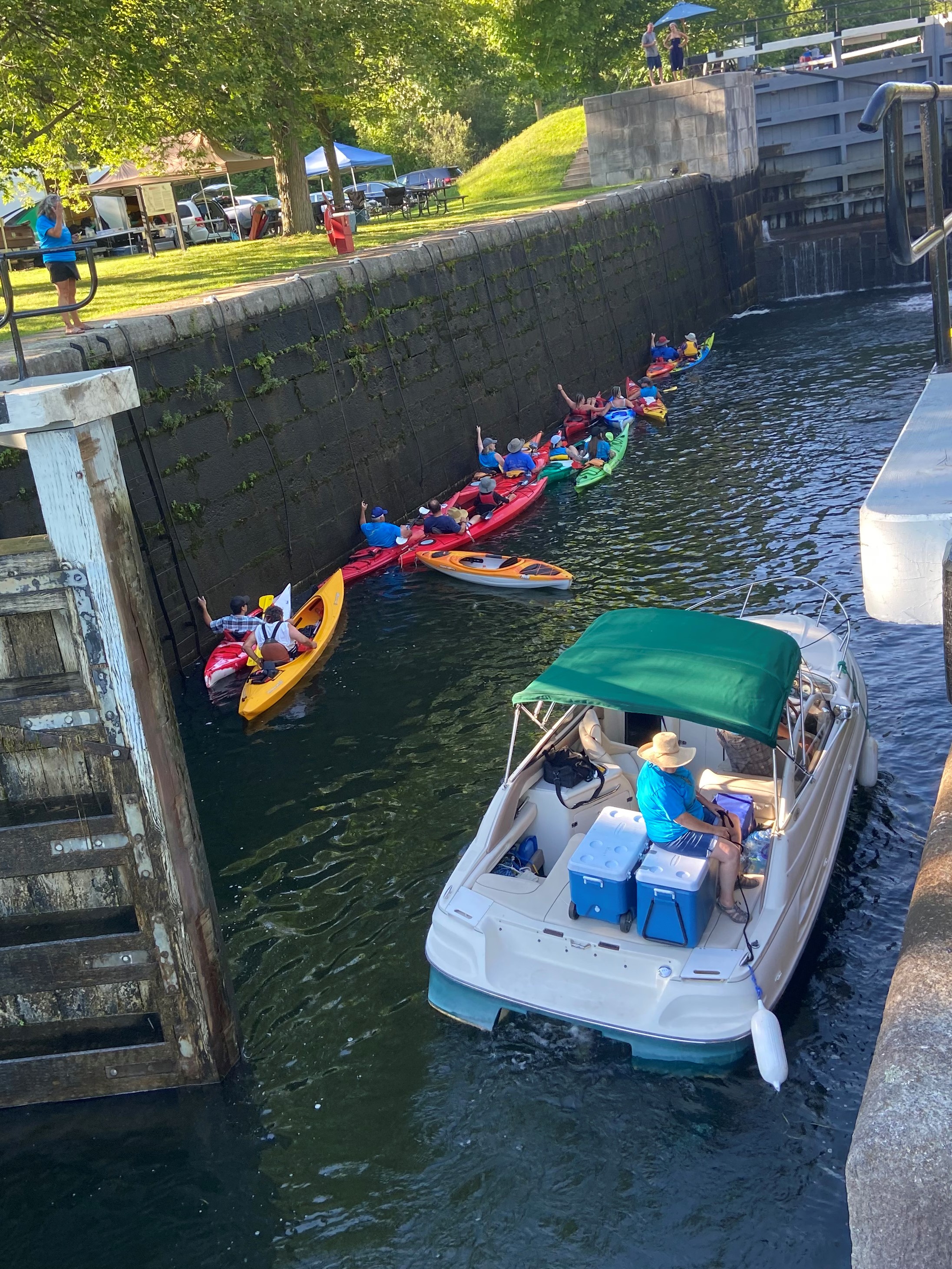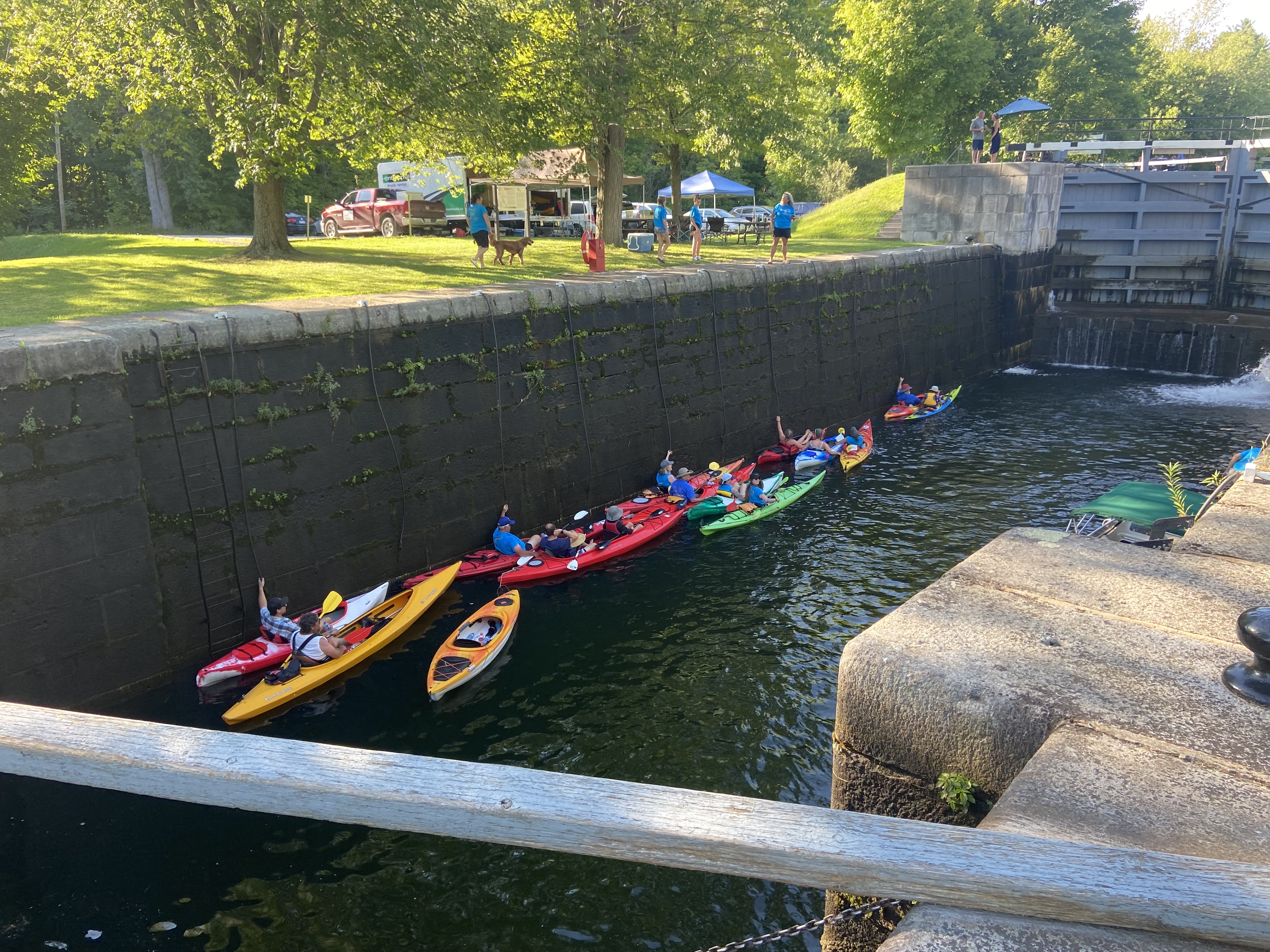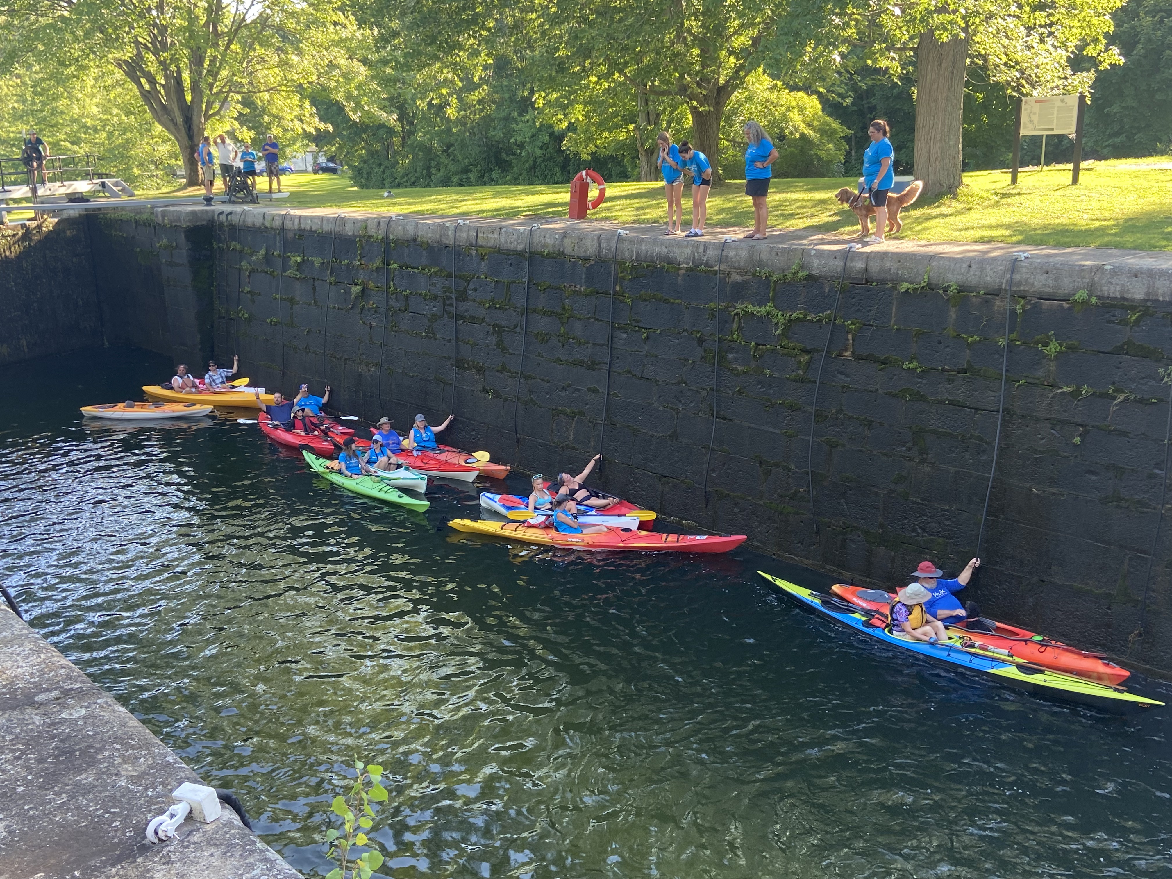 DAY 2: Sunday, August 7, 2022 Today the kayakers left from Upper Brewers Lock with lunch at Seeley's Bay. They camped at Jones Falls after another hot day on the water!